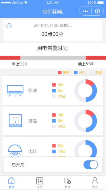 实现对办公楼中央空调、插排、电灯、烟感、红外等用电设备管理,可以远程开关用电设备、用电节能业务控制、用电量统计等。